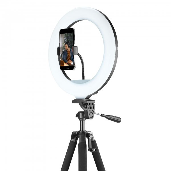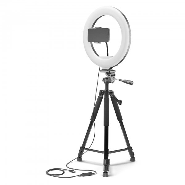 • Други характеристики LED пръстен 13" с три режима на осветление, които могат да се активират с Bluetooth дистанционното управление. Универсална въртяща се и гъвкава стойка за смартфон