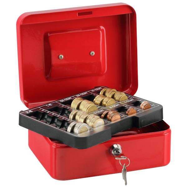 Идеална за бизнес и домашна употреба. Изработена от стомана с метална дръжка за удобство при пренасяне. Монетите се поставят в специално отделение. Подходяща е за каси в магазини, банки, таксита.