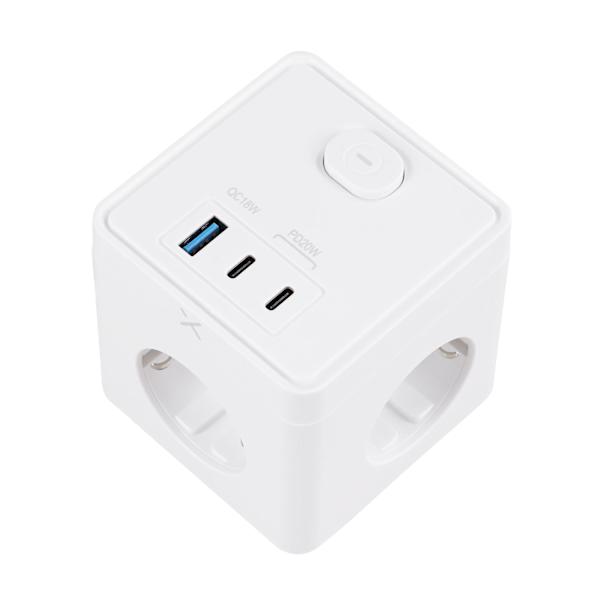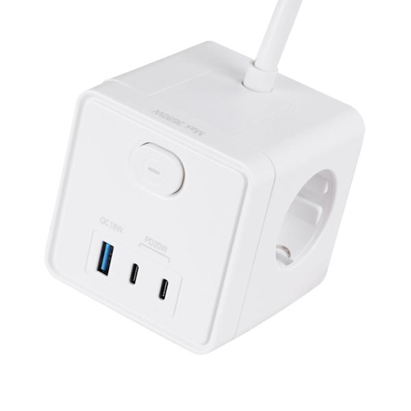С разклонителя Cube Turbo-X имаш три позиции устройства като монитори, лаптопи и лампи (максимална мощност 3680 W), като същевременно можеш бързо да зареждаш устройствата си с USB-A 18W и 2x USB-C PD 20W!