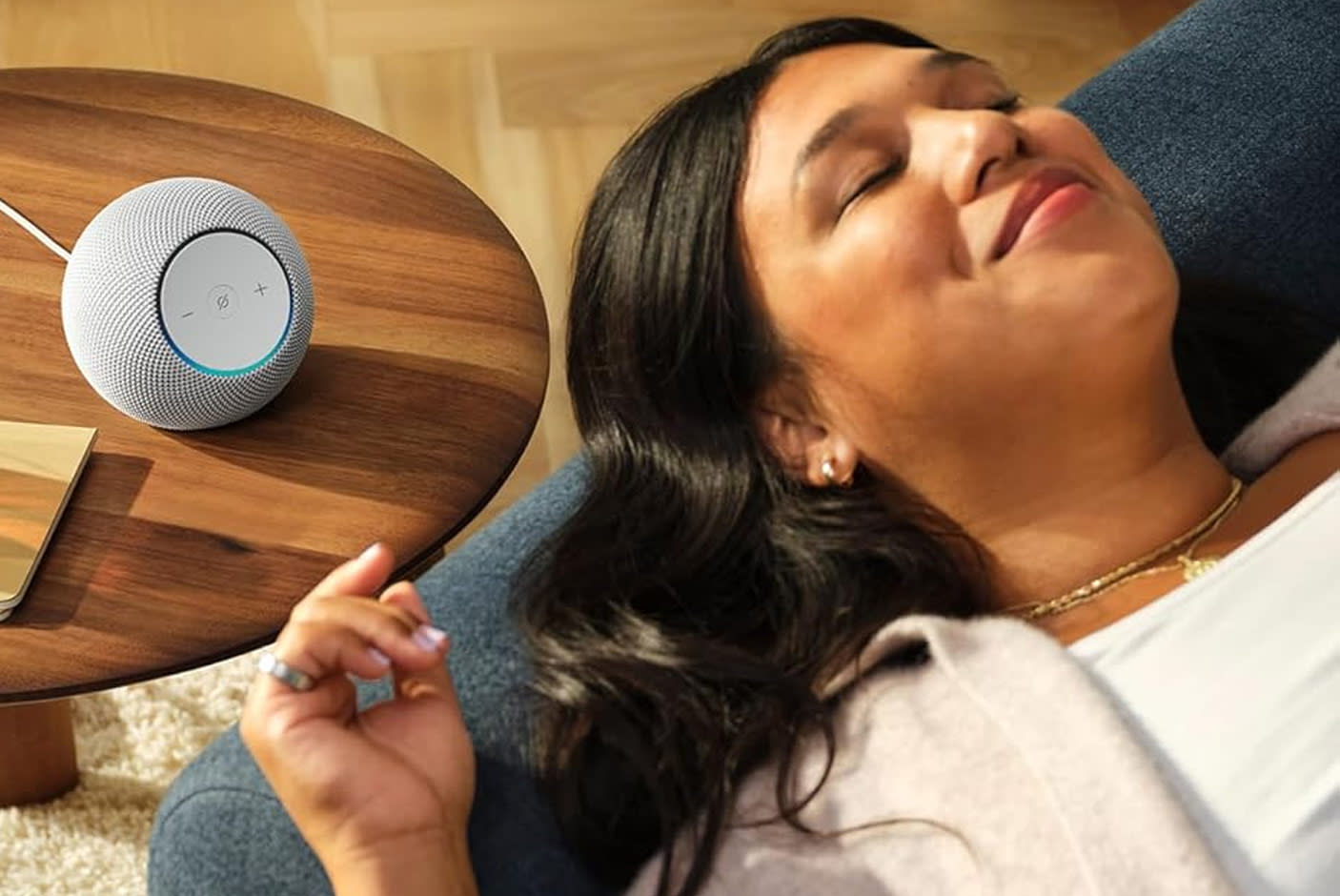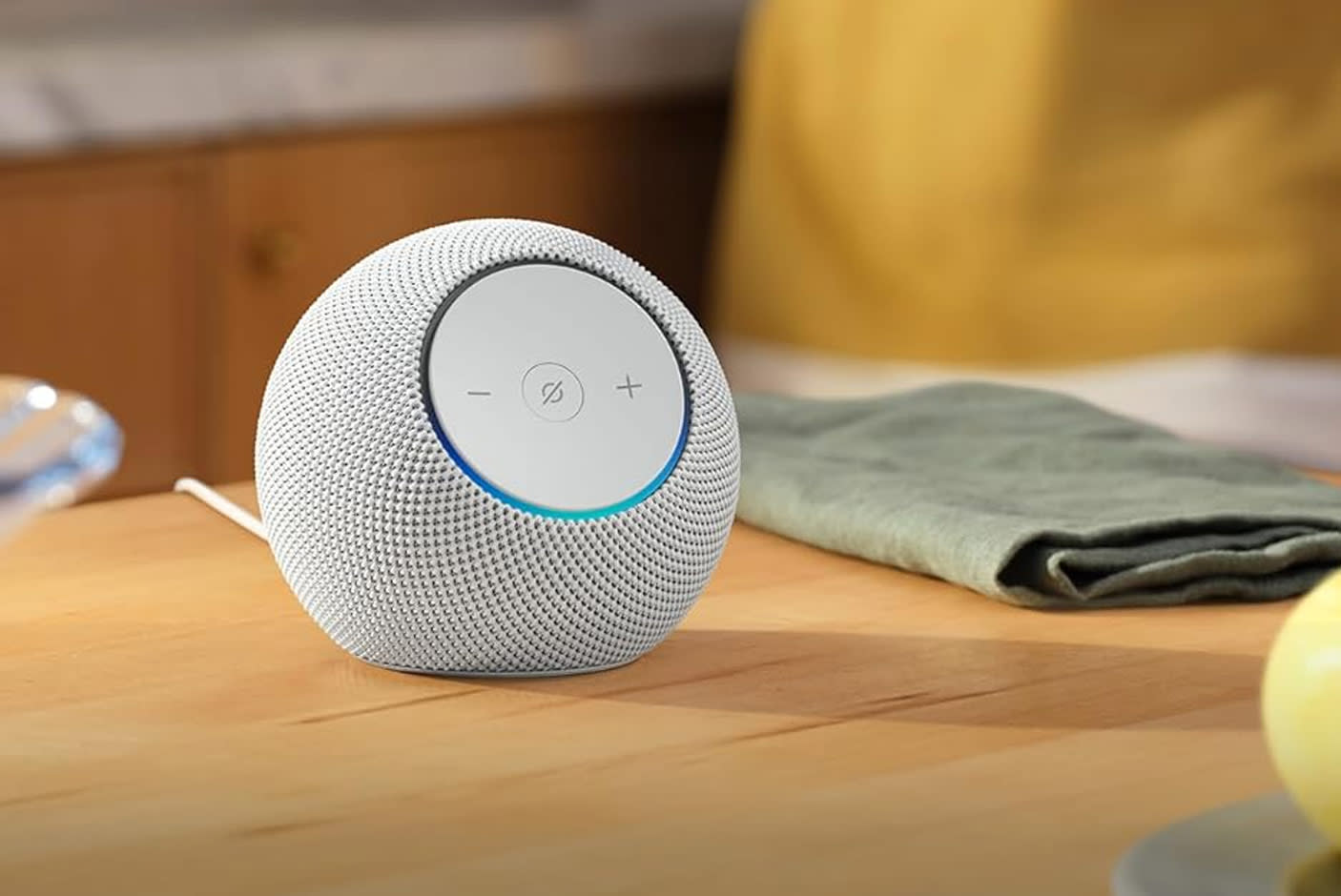 С неповторима естетика, с 3D плетено покритие, което подхожда на всякакъв вид декор, произвежда звук, изпълващ стаята. Можеш да създадеш умен дом със съвместими IoT устройства чрез вградения хъб.